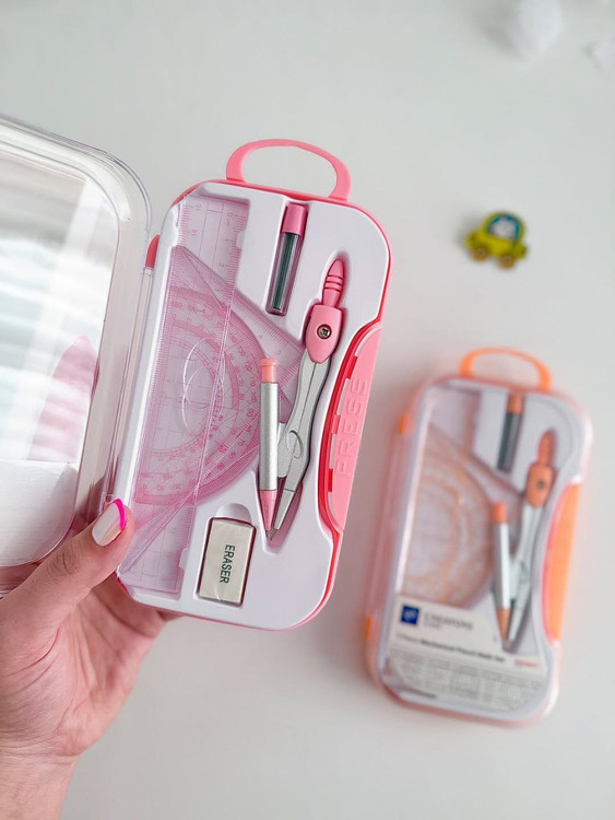 این ست رو داشته باشی که بی نیاز از هر وسیله ای برای درس ریاضی هستی😮💨 این ست شامل پرگار نوک پاکن دو عدد گونیا نقاله خطکش🤌🏻